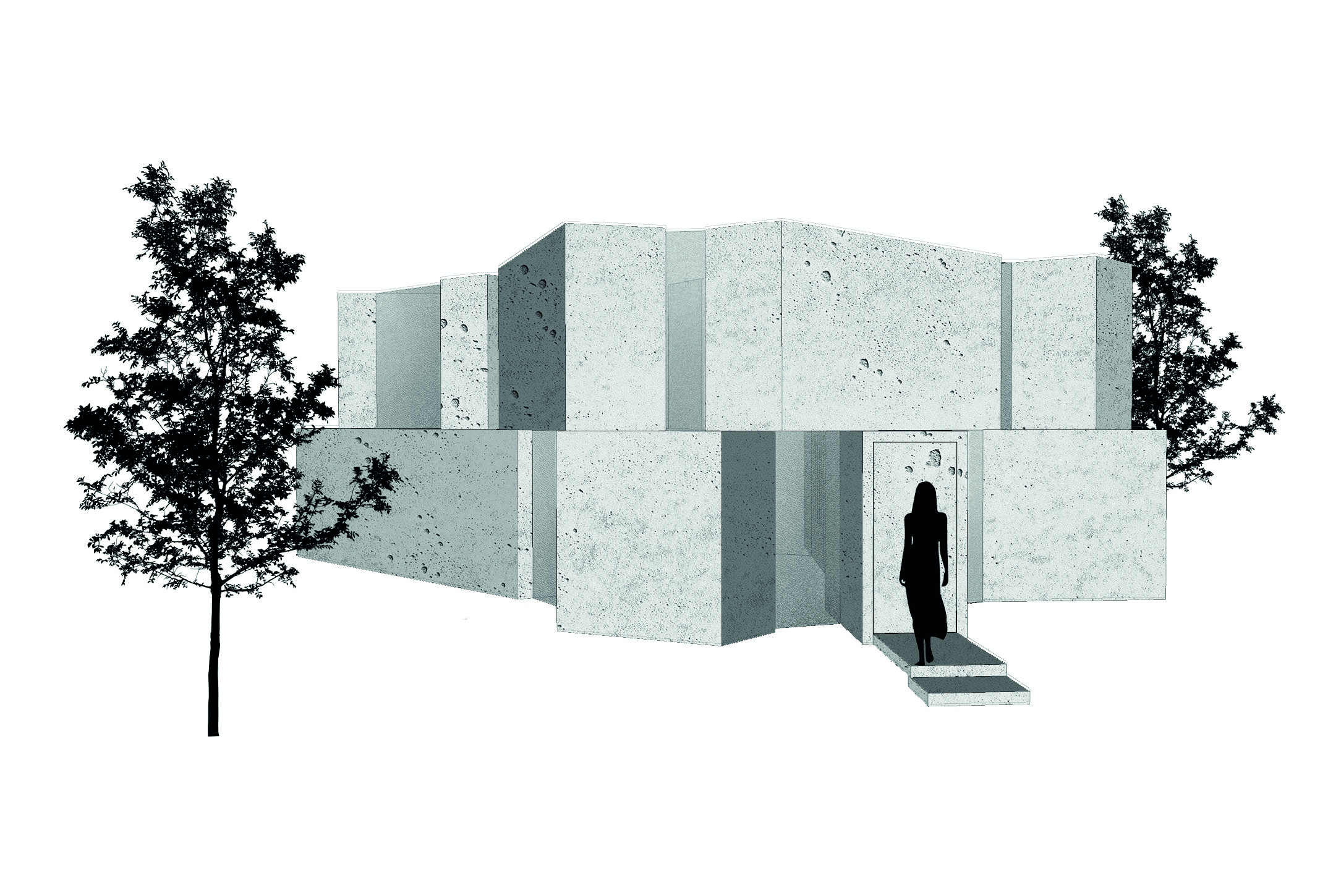 Voor het ontwerp van het werkhuis hebben wij uitgebreid onderzoek gedaan naar de gewenste atmosfeer en de rol van materialisering hierin. In schetsen en maquettes is onder meer gekeken naar de positie van daklichten en hun relatie tot de verschillende programmaonderdelen. Op basis van de schaalverdeling en de stapeling met hout in de maquette is geconcludeerd dat realisatie in hout niet haalbaar is. Daarom is een variant ontwikkeld met een giettechniek om de ruimtelijke sfeer verder te analyseren. Deze maquette is een doorontwikkeling, waarbij de schaal is vergroot om de ruimtes beter te kunnen aftasten en de willekeurige houtafmetingen te onderzoeken. Daarnaast zijn diverse schetsen en axonometrische tekeningen gemaakt om het programma in de plattegrond, doorsnede en het interieur te positioneren. Hierbij is speciale aandacht besteed aan de keuken, trap, wasruimte en entree. De interieuratmosfeer, zoals gezien vanuit de slaapruimte, is uitgewerkt met een specifieke materialisatie die aansluit bij het concept van het werkhuis.